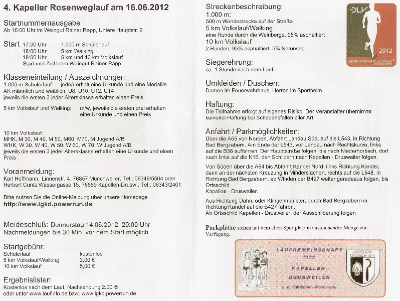 4.Kapeller Rosenweglauf am 16.06.2012 in Kapellen- Drusweiler. |